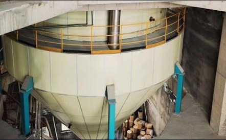喷雾造粒塔:燃气直热式离心喷雾干燥塔,蒸发量高可为450Kg/h,尺寸Ø6*8m,材质316L不锈钢